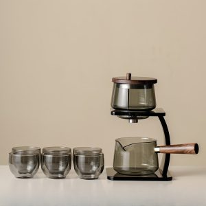Crafted from high-quality borosilicate glass, this tea set is designed to withstand high temperatures while maintaining a crystal-clear appearance. The heat-resistant nature of borosilicate glass ensures that your tea remains at the ideal temperature for longer periods without the worry of cracking. This makes the Button-type Water Outlet Gray Glass Lazy Kung Fu Semi-Auto Tea Set both durable and aesthetically pleasing.
