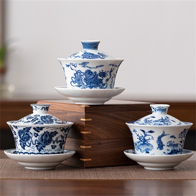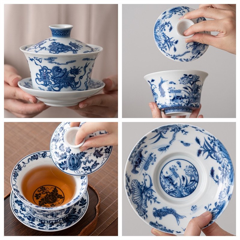 For tea enthusiasts who enjoy brewing tea while traveling, the Class Large White and Blue Porcelain Traditional Antique Gaiwan Tea Cup is both portable and functional. Its durable porcelain construction ensures it withstands travel, while the compact size makes it easy to pack and carry. Pair it with our antique traveling tea set collection to enjoy a complete tea brewing experience while on the go.