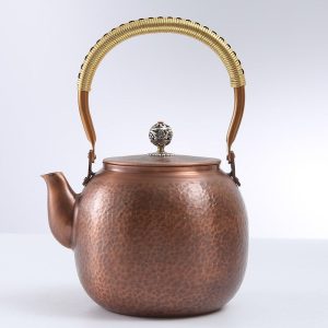 Designed with both style and functionality in mind, this kettle features a wooden handle that ensures a secure and comfortable grip. The ergonomic design makes it easy to pour with precision, reducing the risk of spills. The handle’s warm color complements the rich, warm tones of the copper, adding a rustic elegance to the overall look of the kettle. For those who prefer a more modern touch, pairing this kettle with a stainless steel tea kettle could offer a perfect balance between classic and contemporary styles.