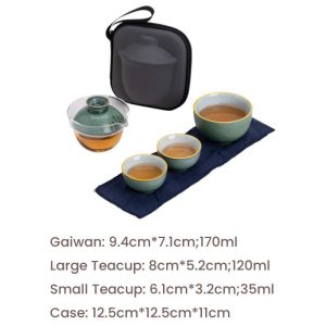 The Gongfu tea set is ideal for anyone who enjoys traditional tea preparation and wishes to carry the essentials with them on their travels. This set includes a gaiwan, a large teacup, and two small teacups, providing everything needed for a complete Gongfu tea session. The case helps organize all items, making it easy to transport and ready to use whenever the moment for tea arises.