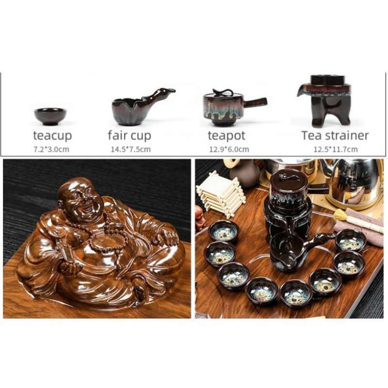 Discover the perfect combination of serenity, tradition, and artistry with the Lazy Kung Fu Tea Ceremony Set and Tea Tray with Finely Carved Buddha. This unique tea set provides everything you need to fully embrace the time-honored practice of Gongfu tea ceremonies, all while infusing your experience with symbolic meaning. The finely carved Buddha on the tray not only adds beauty but also embodies peace and mindfulness, enhancing your tea ceremony and creating a tranquil atmosphere.