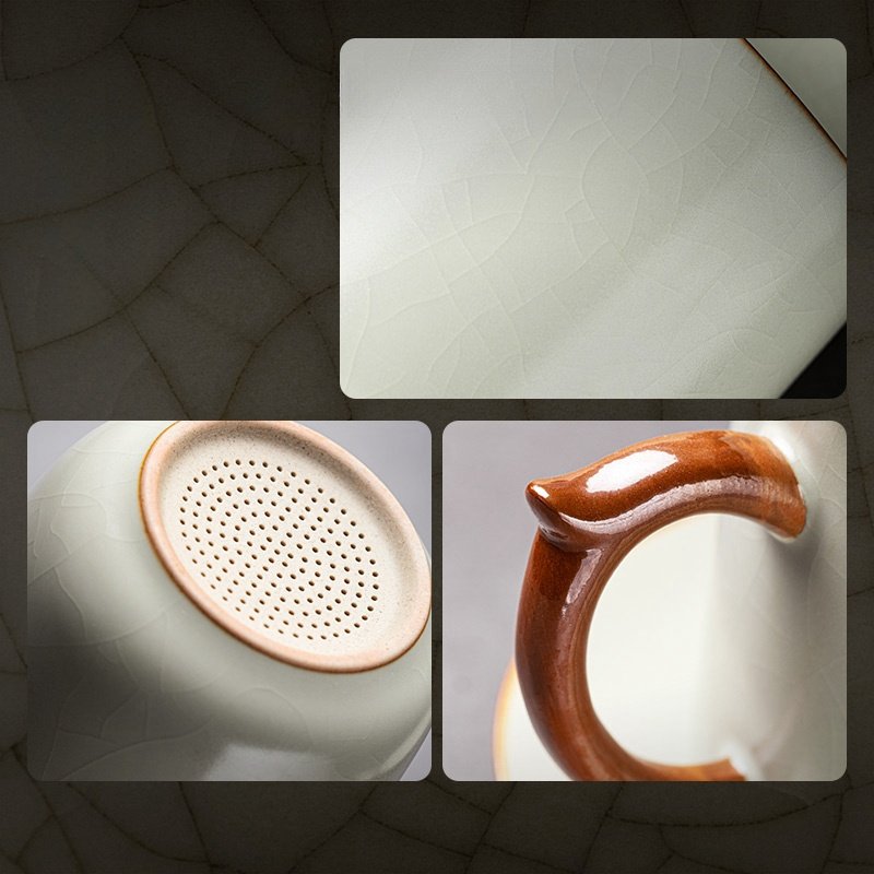 Immerse yourself in the tranquil beauty of the Classic Vintage Beige Crackle Glaze Traditional Chinese Tea Cup Mug with Lid and Infuser. This exquisite tea cup is a testament to traditional Chinese pottery, featuring a timeless crackle glaze that enhances its vintage charm.