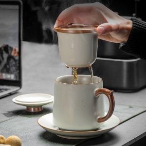Whether as a gift for a loved one or as an addition to your collection, this tea cup serves as an elegant and practical choice. Its classic design and functional features make it a thoughtful present for anyone who appreciates the ritual of tea drinking.