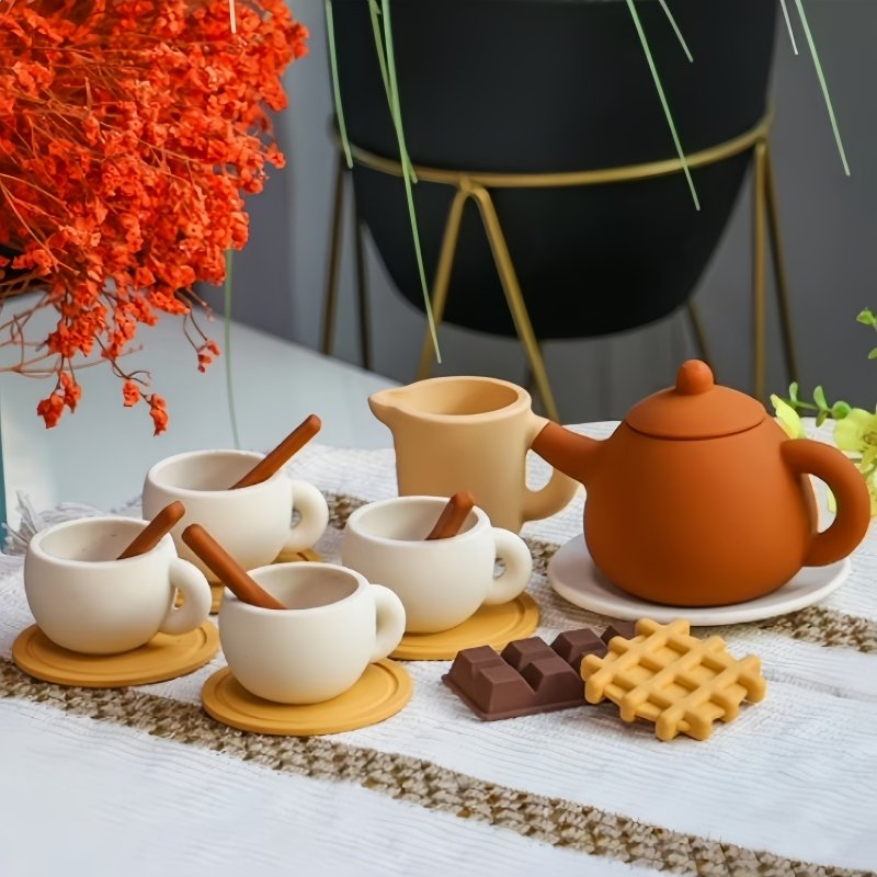 Delight your little ones with the Coffee and Chocolate Brown Safe Silicone Childs Cute Vintage Tea Party Set—a perfect blend of fun, safety, and imaginative play. This charming tea set is designed to captivate young minds, giving them an opportunity to enjoy a pretend afternoon tea party filled with waffles, chocolate, and warm cups of tea. The playful brown theme with the soft, safe silicone material ensures your child can safely create their own tea party while developing fine motor skills and creativity.