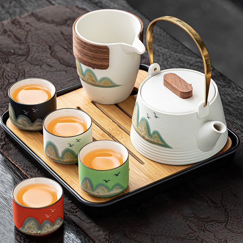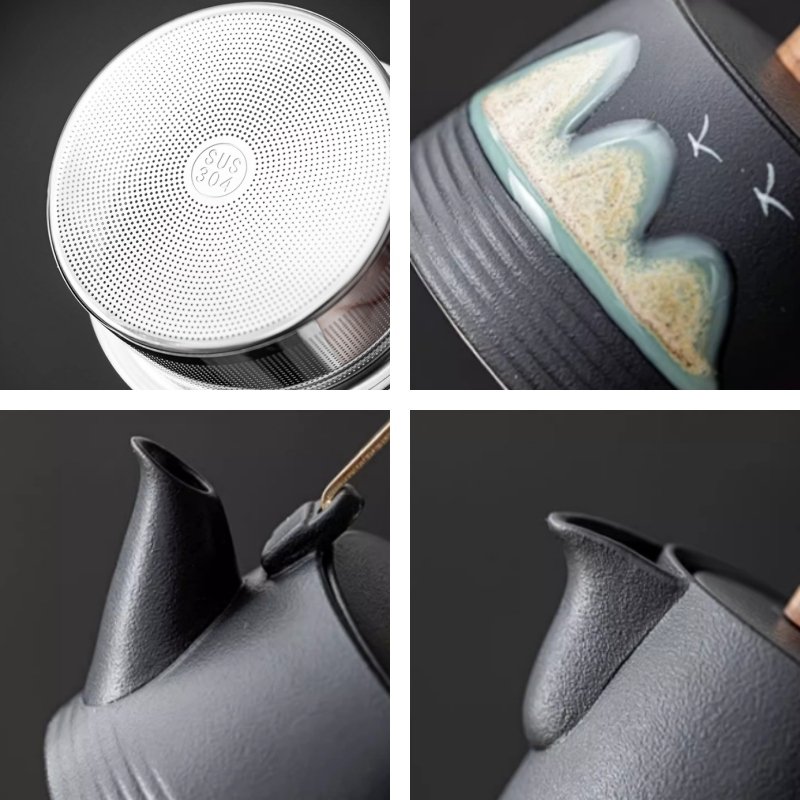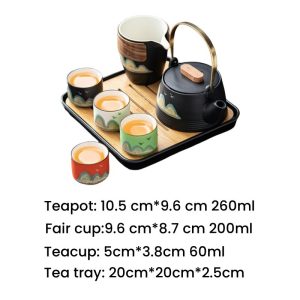 Enjoy your tea in style with Japanese ceramic tea cups that perfectly complement the modern design of the teapot. With a smooth ceramic finish, these cups bring sophistication to your tea rituals. The cups are designed with the same detailed mountain imagery, making each sip an experience that connects you to nature and the art of tea drinking.