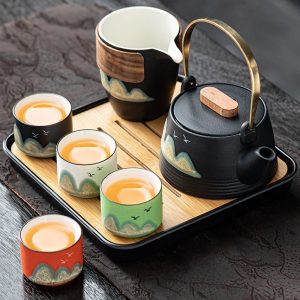Introducing the handmade Japanese tea set, where elegance meets artistry. The Colorful Hand Drawn Mountains Valuable Ceramic Japanese Tea Set is crafted with care, featuring intricate, hand-painted mountain designs that evoke nature’s calm and beauty. The contrast of vibrant, colorful mountains against the serene white or black backdrop adds a touch of tranquility to your tea time. Each piece is made to elevate your tea ceremony or simply provide a peaceful moment with every sip.
