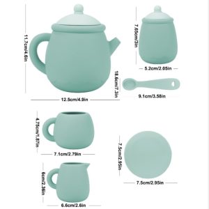 Crafted from safe silicone, this tea set ensures durability and longevity while providing a soft and flexible material that’s safe for young children. Unlike traditional plastic or ceramic sets, the silicone is BPA-free and shatterproof, allowing children to play freely without the risk of breakage. Silicone’s soft texture makes it easy for small hands to grip, making it the ideal material for children’s tea sets. Looking for a smaller option? Explore our mini teapot set collection for a perfect match.