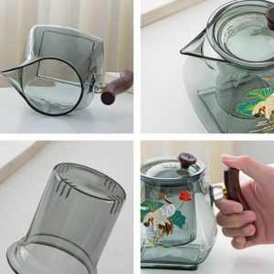 One of the standout features of this tea set is the high-quality borosilicate glass construction, which makes it resistant to heat and breaking. The ergonomic handle of the teapot ensures comfort while pouring, and the finely crafted lid fits snugly to preserve the heat of your tea. Additionally, the traditional crane design on the teapot brings a touch of nature into your tea-drinking ritual, making it a truly special experience. For a more modern brewing experience, consider exploring our semi automatic glass tea set, which offers both convenience and style.
