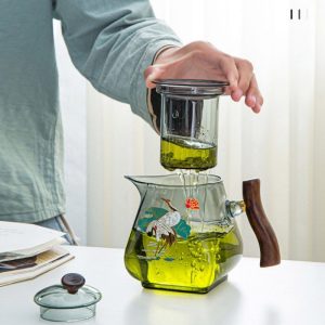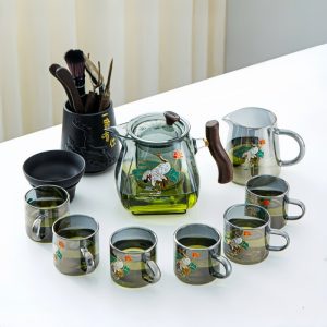 Whether you’re gifting this tea set to a loved one or adding it to your own collection, it’s perfect for tea enthusiasts who appreciate both form and function. The beautiful crane motifs make it an ideal gift for special occasions like weddings, anniversaries, or birthdays. The design is timeless, ensuring that it will be a cherished item for many years. The glass cup of tea completes the set, adding an extra layer of elegance to your tea-drinking experience.