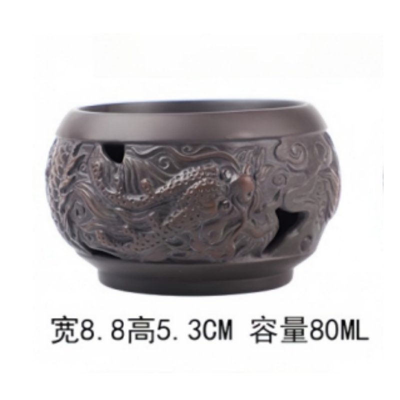 The Creative Double-layer Hollow Dragon Yixing Zisha Gongfu Tea Cup has a compact yet ideal capacity of 80 milliliters (2.7 fluid ounces), making it perfect for the Gongfu tea ceremony, where multiple infusions of tea are made in small quantities. Its dimensions of 8 cm in height and 5.3 cm in width make it the perfect size for brewing concentrated, flavorful cups of tea. For a wider selection of traditional tea ware, check out our chawan cup collection.