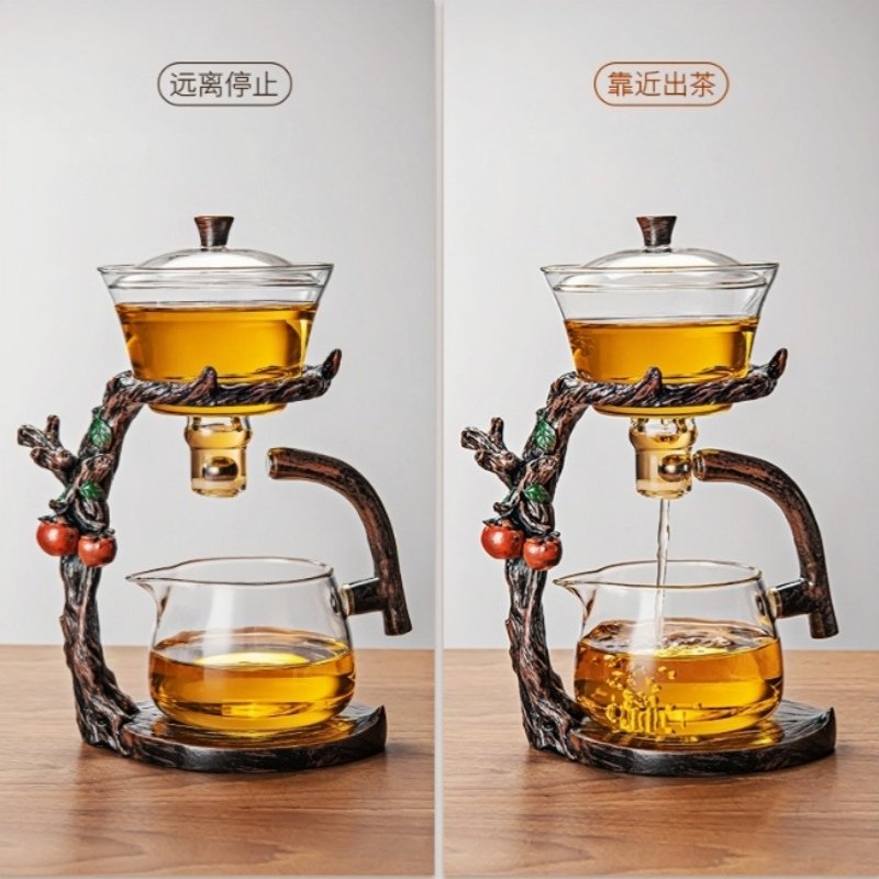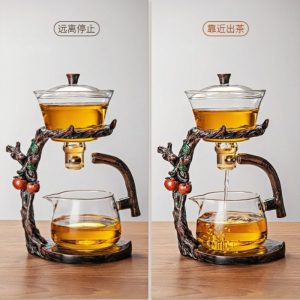 The Creative Persimmon Tree Heat Resistant Lazy Semi-Automatic Glass Tea Set brings a beautiful fusion of nature, innovation, and functionality. Featuring a persimmon tree-inspired design, this tea set elevates your tea experience with its semi-automatic pouring mechanism, high borosilicate glass construction, and heat-resistant properties. Whether you’re hosting a tea ceremony or enjoying a quiet moment of relaxation, this set is sure to impress with its unique aesthetic and convenient functionality.