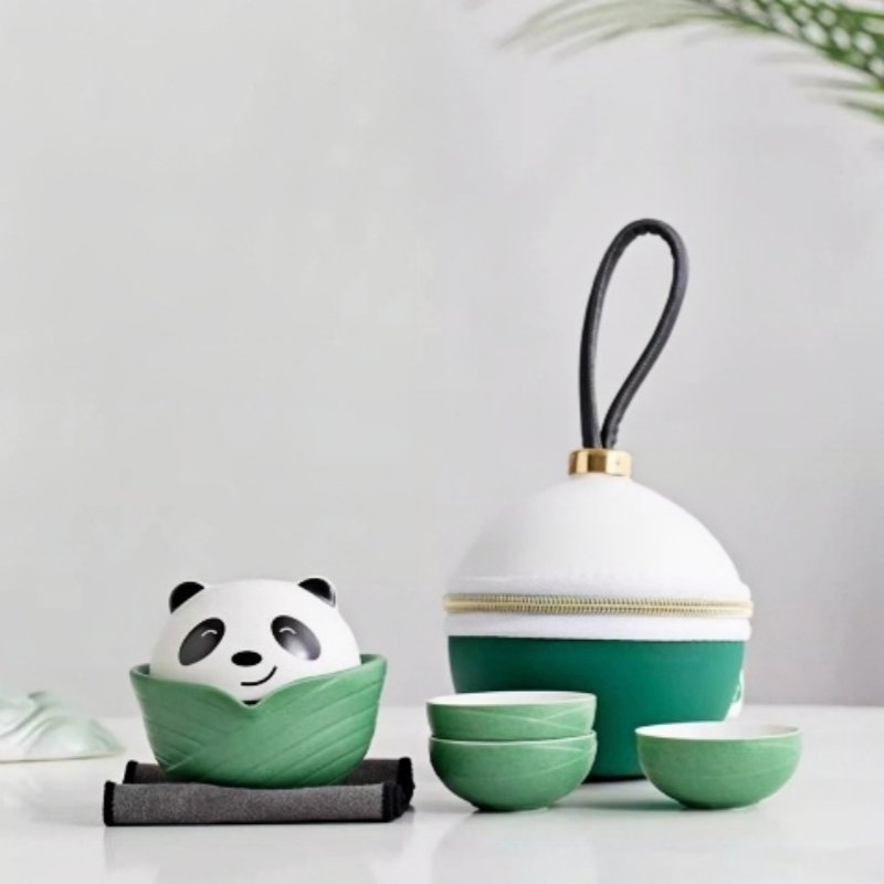 The Creativity Cute Crooked Smile Panda Ceramic Portable Travel Gongfu Tea Set is designed with portability in mind. The set comes with a convenient travel container that features a zipper and carrying loop for easy transport. This makes it perfect for tea lovers who want to enjoy their favorite tea ceremonies while traveling, whether you’re heading to work, going on a picnic, or enjoying a tea session on the go. The compact, stackable design ensures everything is securely stored and easy to access.
