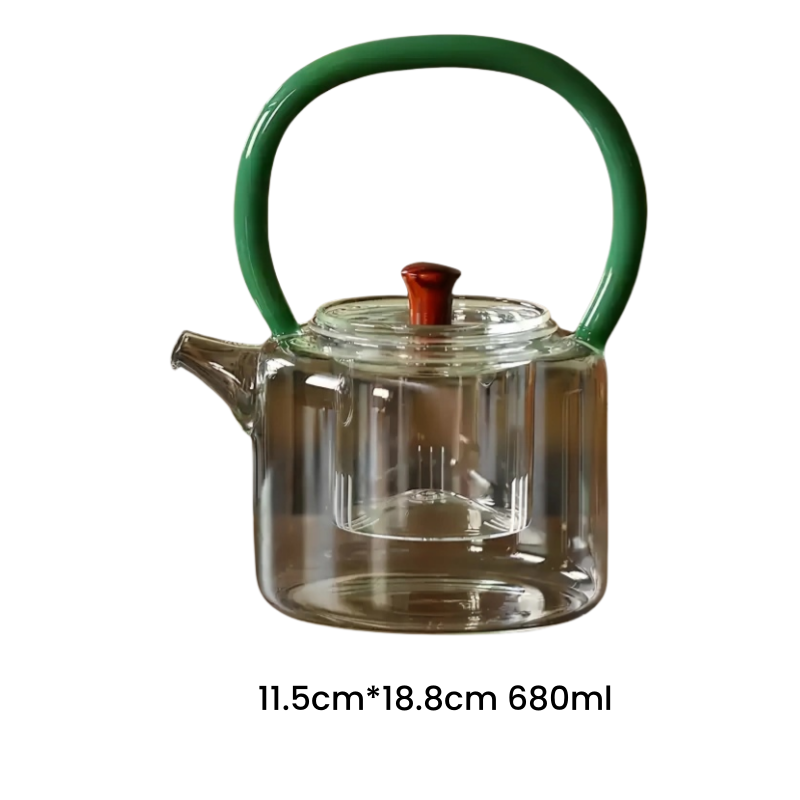 Designed for both functionality and aesthetics, the teapot features a green handle that provides a comfortable grip for easy pouring. This handle is made from high-quality materials that not only ensure a secure hold but also add a refreshing pop of color, making this teapot stand out in any setting. Whether you’re pouring for yourself or serving guests, the ergonomic handle allows for a smooth and controlled pour. For those who appreciate ergonomic design, this teapot’s handle is a perfect match. It pairs well with a ceramic tea mug with infuser and lid.