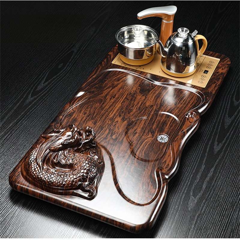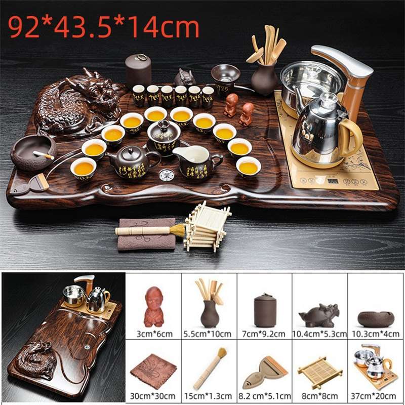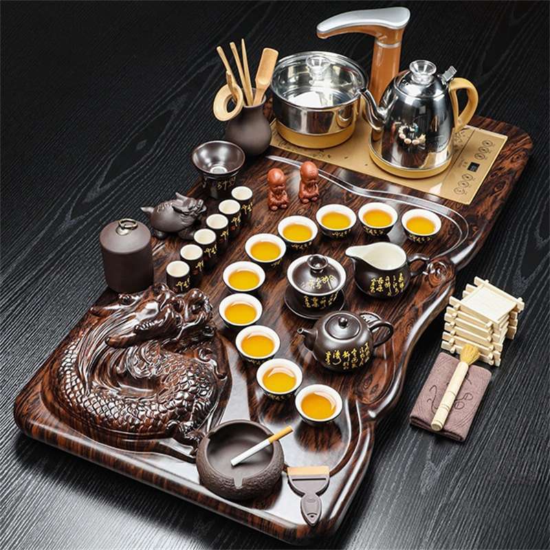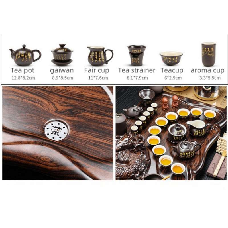 The wooden tray in this set is not only functional but beautifully crafted. With enough space to accommodate all the essential tea accessories, it helps you organize your tea ceremony efficiently. The smooth surface allows for easy cleanup, while the dragon carving on the tray adds an extra layer of elegance. This tray serves as the ideal surface for your Kung fu tea set, ensuring that you have everything in place for the perfect tea session.