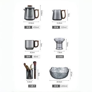 This tea set is crafted from high-quality borosilicate glass, which is known for its durability and resistance to thermal shock. The grey tint gives the set a sophisticated, vintage look that will impress your guests. It’s not just beautiful; the borosilicate glass ensures that your tea will stay at the ideal temperature longer, allowing you to savor each sip without worrying about rapid cooling. The set’s transparent design allows you to enjoy the beautiful colors of your tea, making it a delightful visual experience.