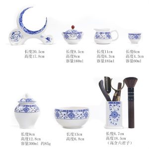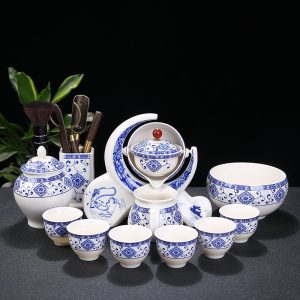 The Elegant Blue and White Porcelain Lazy Semi Automatic Tea Set comes in two configurations: the 8-piece set and the 11-piece set. The 8-set includes everything you need for a simple tea ceremony, including 6 teacups, 1 teapot with base, and 1 fair cup. The 11-set adds a tea caddy, tea utensils, and a tea washer, perfect for those who want a complete tea experience. If you’re looking for a more intricate set, consider our vintage dragon tea set.
