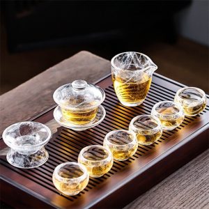 The high-quality borosilicate glass used in this set ensures longevity and resilience. Known for its heat resistance, this material allows the set to handle hot water and tea without any risk of breaking. This makes it a perfect choice for tea lovers who want a set that combines both beauty and practicality. The clarity of the glass allows you to see your tea steeping, adding to the visual enjoyment of the tea-making process.