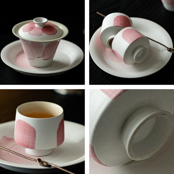 The most striking feature of this tea set is the beautiful hand-painted pink petal design that graces each piece. The subtle yet vibrant strokes of pink against the pure white porcelain evoke the elegance of a blooming flower, making it a perfect choice for those who appreciate fine craftsmanship and artistic detail. Each piece in the set is individually hand-painted by skilled artisans, ensuring that every set is unique.