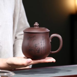 Each Yixing Zisha tea cup is crafted using time-honored methods passed down through generations. The clay itself is known for its excellent ability to retain heat, enhancing the flavor and aroma of your tea. This teacup mug features a unique design, with delicate brushwork showcasing bamboo and traditional Chinese characters. Whether you’re serving tea at a gathering or enjoying a personal tea ritual, this teacup adds a sense of timeless elegance to every sip. You can explore more of these traditional pieces in our yixing teacup collection.