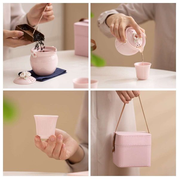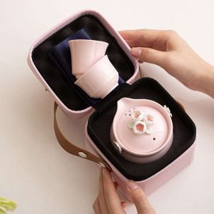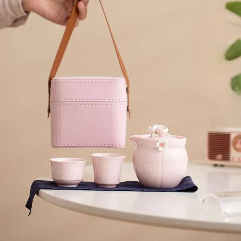 The Elegant Pink Flowers Ceramic Portable Gongfu Travel Tea Set Case makes an excellent gift for tea lovers. Whether for a birthday, holiday, or special occasion, this tea set combines beauty, practicality, and tradition, making it a thoughtful and meaningful present. The portability of this set allows anyone to enjoy a traditional tea ceremony wherever they go, making it ideal for both seasoned tea drinkers and those new to tea culture.
