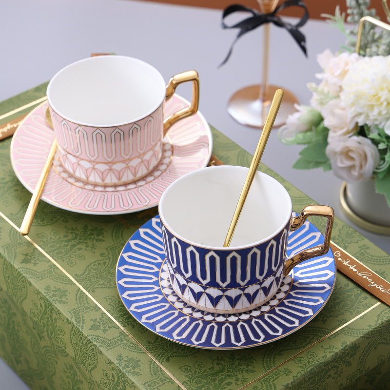 Introducing the English Bone China Vintage Tea Cups and Saucers Set with Elegant Geometric Pattern, a timeless collection designed to elevate your tea experience. Perfect for afternoon tea parties, cozy moments, or as a charming addition to your tea collection, this set exudes sophistication. The combination of vibrant blue geometric patterns with a delicate golden rim brings elegance to any occasion, making it ideal for those who appreciate classic beauty. If you love the style of a vintage tea cup, this set is sure to appeal.