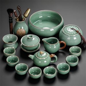 The Exquisite Chinese Ceremonial Tea Set with Dragon Handle Antique Green Cracked Ice Porcelain makes a thoughtful and luxurious gift for tea lovers, collectors, or anyone with an appreciation for fine craftsmanship. Whether you’re gifting it for a special occasion or adding it to your own collection, this set offers both elegance and functionality. Its timeless design makes it a versatile addition to any tea enthusiast’s home.