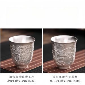 The cups’ design is rooted in Chinese history and traditions, making them not only a functional item but also a work of art. The fusion of silver and ceramic materials ensures that this tea set will be both durable and visually appealing for years to come. The dragon motif is often associated with strength and wisdom, making this tea cup set a perfect companion for any tea lover seeking a meaningful experience.