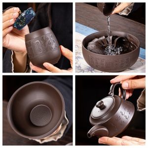 One of the most remarkable features of Yixing Zisha clay is its ability to improve the flavor of tea over time. The natural porosity of the clay allows it to absorb the tea’s essence, which intensifies the flavor with each brewing. Over time, the purple clay teapot will become seasoned, imparting a unique taste to each new batch of tea. This set is perfect for lovers of fine teas such as oolong, pu-erh, and green tea, providing a perfect medium for brewing and serving.