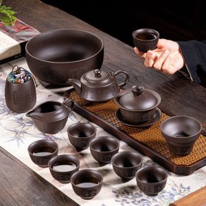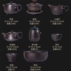 Be the first to review “Exquisite Purple Clay Yixing Zisha Tea Set Carved Chinese Characters”