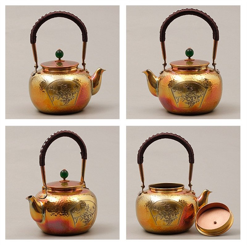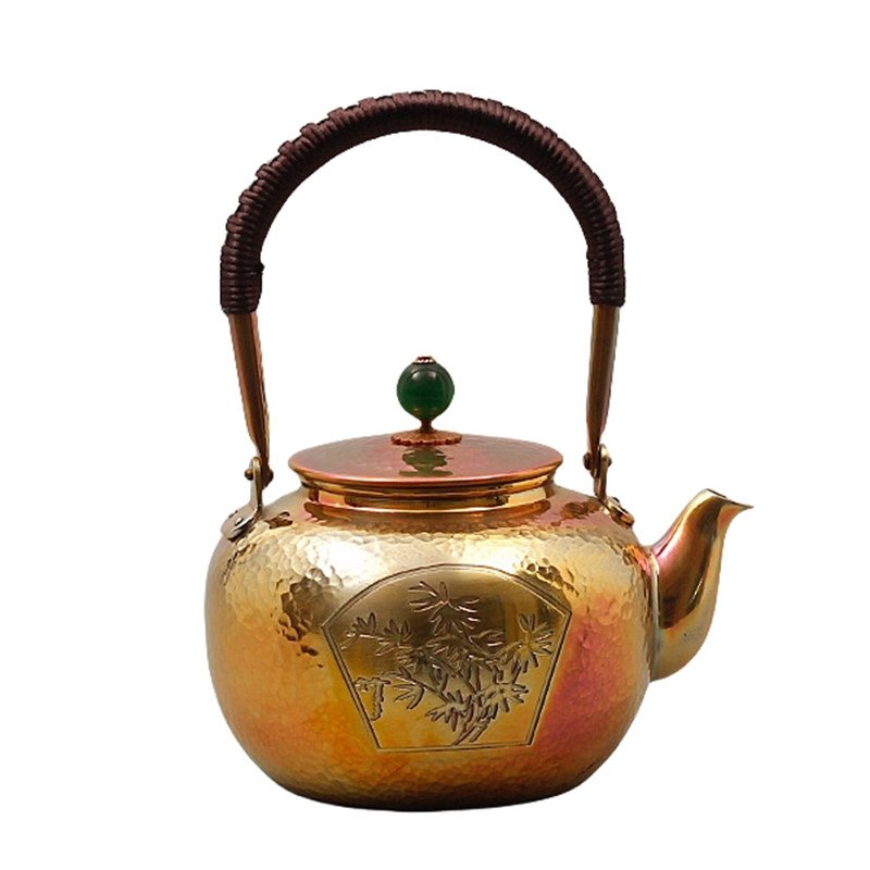 Exquisite Solid Antique Hammered Copper Tea Kettle with Stunning Golden Annealing Finish for Sale