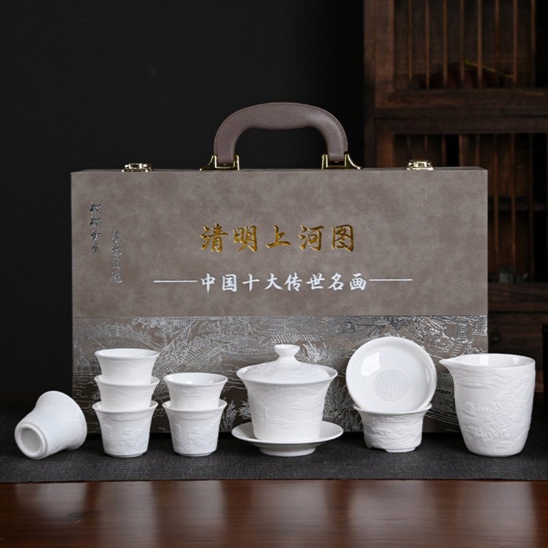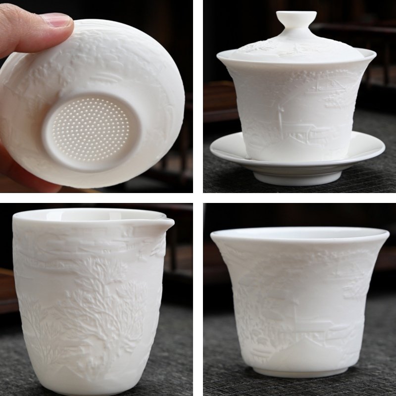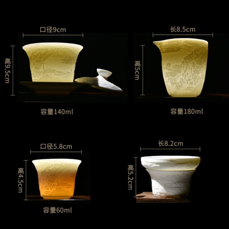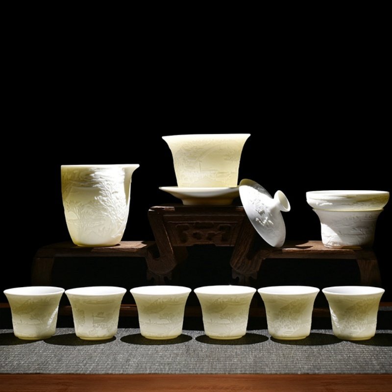 The Exquisite Traditional Chinese Tea Service Set with Antique Mutton Fat Jade Porcelain is an extraordinary example of fine craftsmanship, embodying the timeless elegance of Chinese tea culture. This set, crafted from mutton fat jade porcelain, boasts a delicate appearance with a smooth, glossy finish that replicates the beauty of jade, making it a stunning addition to any tea collection. Its intricate design, paired with its functionality, ensures that this tea set is not only visually appealing but also perfect for daily use or special tea ceremonies. This set will surely complement any Chinese tea ceremony set, offering an authentic and sophisticated tea-drinking experience.