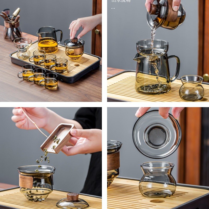 Elevate your tea-drinking experience with the Fancy Exquisite Clear Grey Borosilicate Heat-resistant Glass Tea Set, designed for those who appreciate both style and function. This set brings together the durability of borosilicate glass with the elegance of modern design. The clear grey tones of the glass provide a stunning visual appeal, allowing you to admire the beauty of your tea as it brews. Whether you are entertaining guests or enjoying a moment of calm, this tea set ensures every sip is an experience in itself.