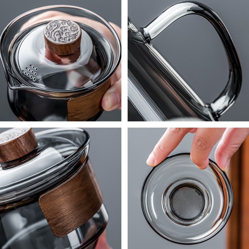 Made from premium borosilicate glass, this tea set is resistant to thermal shock and breakage, ensuring it lasts for years. The heat-resistant properties of the borosilicate glass make it ideal for both hot and cold tea infusions. The clear grey color adds sophistication to the design, making it a perfect choice for modern kitchens or as a gift for tea enthusiasts. The set’s transparency allows you to observe the tea’s color as it brews, enhancing your enjoyment.