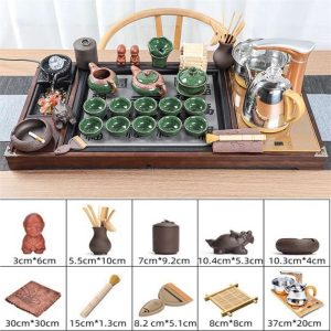 The Tea service set with tray offers everything you need for an authentic Gongfu tea ceremony. Included are a beautifully designed teapot, gaiwan, fair cup, and tea cups, along with essential accessories like a tea infuser, scraper, and maintenance brush. Each piece has been carefully crafted to ensure your tea is brewed and served at its finest, making this set a must-have for tea lovers.