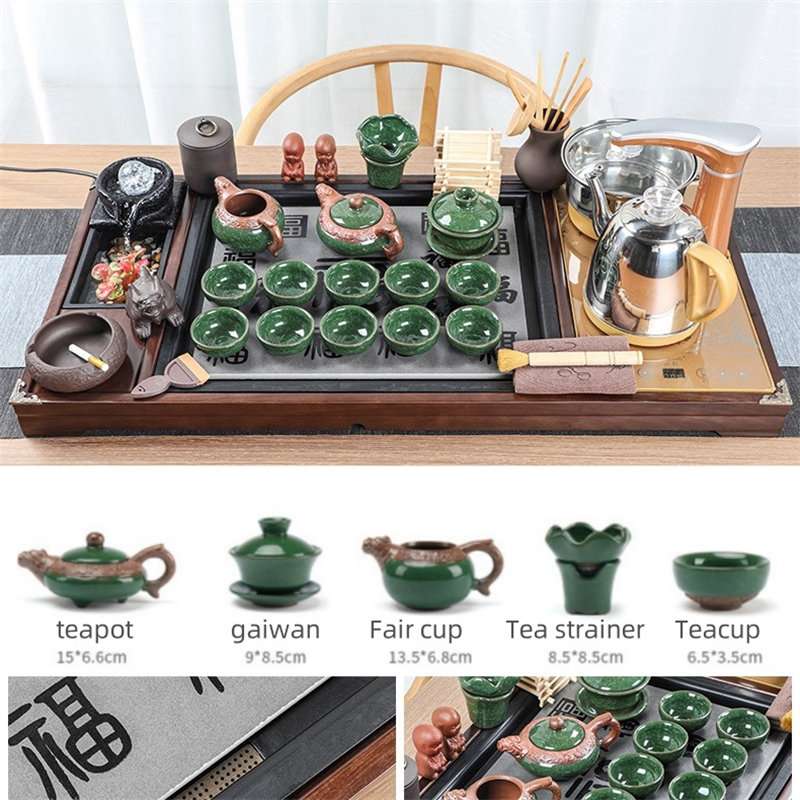 Flowing Water Emerald Dragon Cracked Ceramic kung Fu Tea Set with Tea Tray