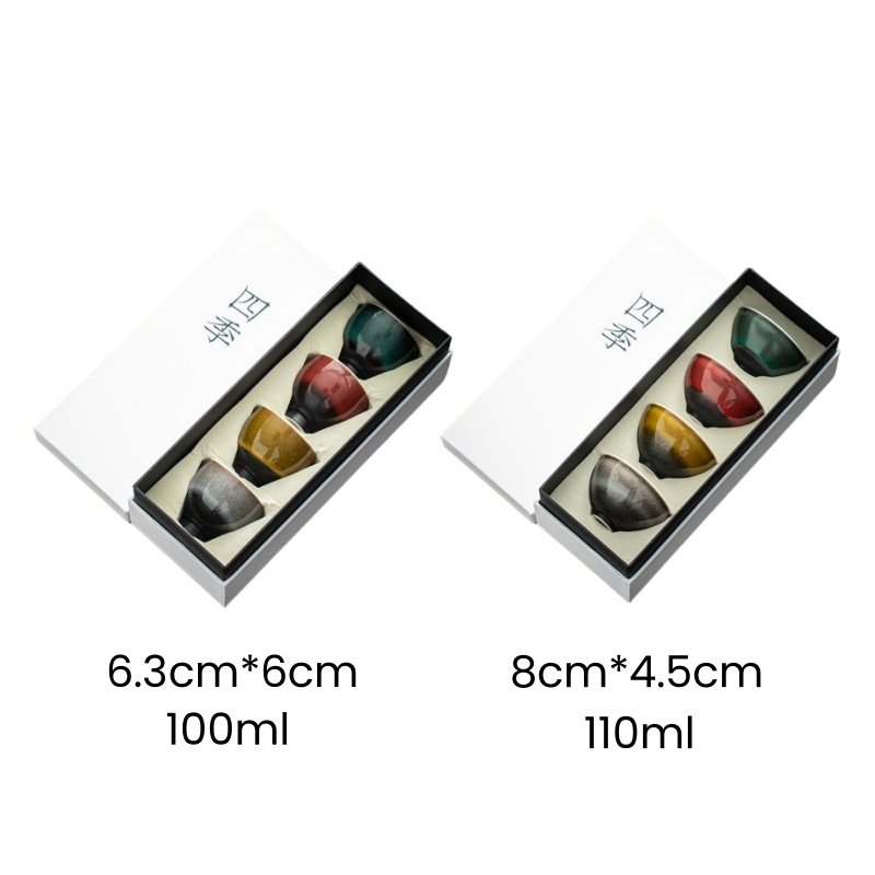 The Four Seasons Themed Kiln-changed Tenmoku Glaze Tea Cups come in two sets, each designed to suit different preferences: