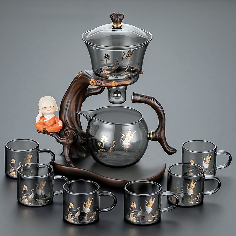 Golden Crane Zen Theme Glass Lazy Semi-Automatic Kung fu Tea Set