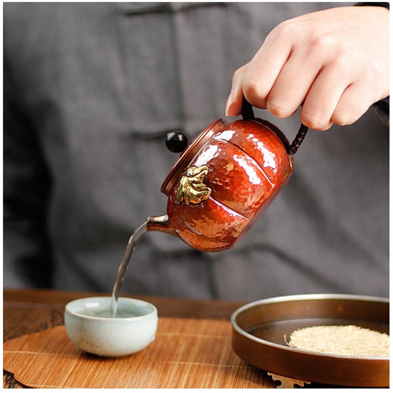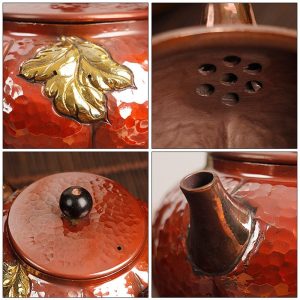 This Golden Leaf Vintage Hammered Annealing Copper Tea Kettle is not just a functional item, but a piece of art. Its unique design, combined with the premium copper material, ensures that it will be a lasting addition to your tea collection. Whether for personal use or as a thoughtful gift for a tea lover, this teapot brings together elegance, tradition, and practicality in one beautifully crafted package. For an even more traditional tea experience, consider pairing it with an antique Chinese teapot to complete your collection.