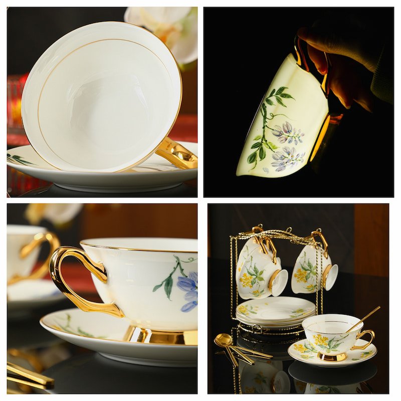 The beautiful hand-painted details on each cup and saucer set are the highlight of this design, offering an artistic expression that is perfect for tea connoisseurs. The gold detailing on the rim of both the cup and saucer brings a touch of royal sophistication. Whether you’re hosting a special tea party or enjoying a moment of quiet reflection, this set will provide the perfect backdrop. If you’re looking to complement this set with a matching full set, our Chinese bone china tea set might be just what you need for a complete and refined tea experience.