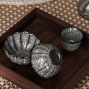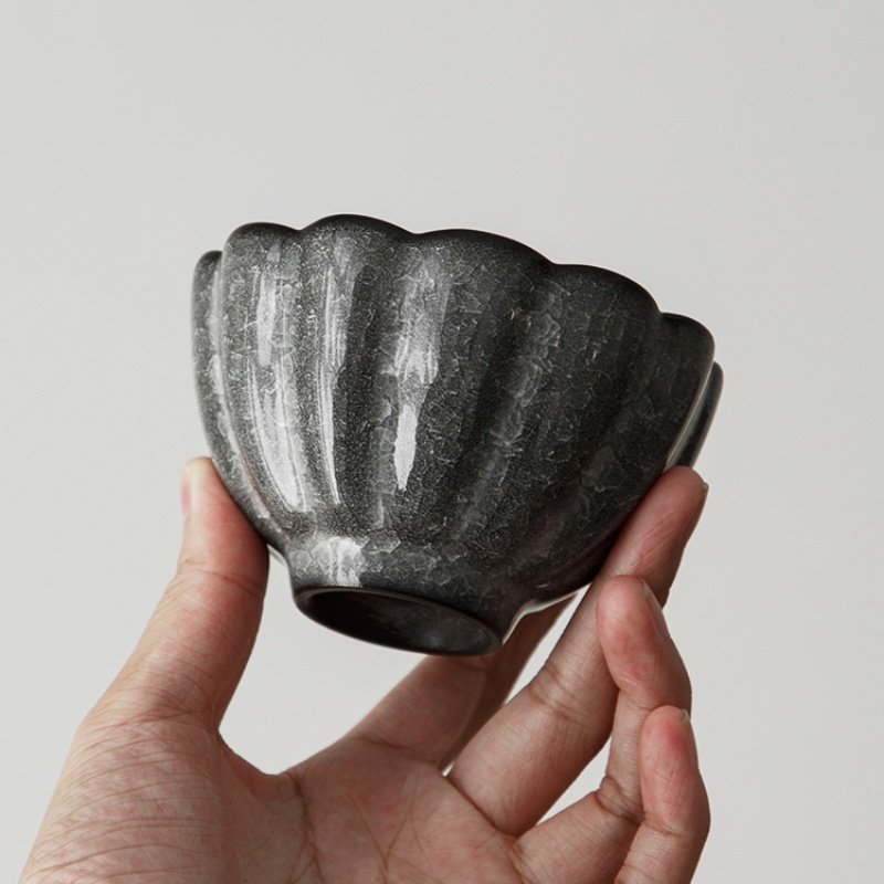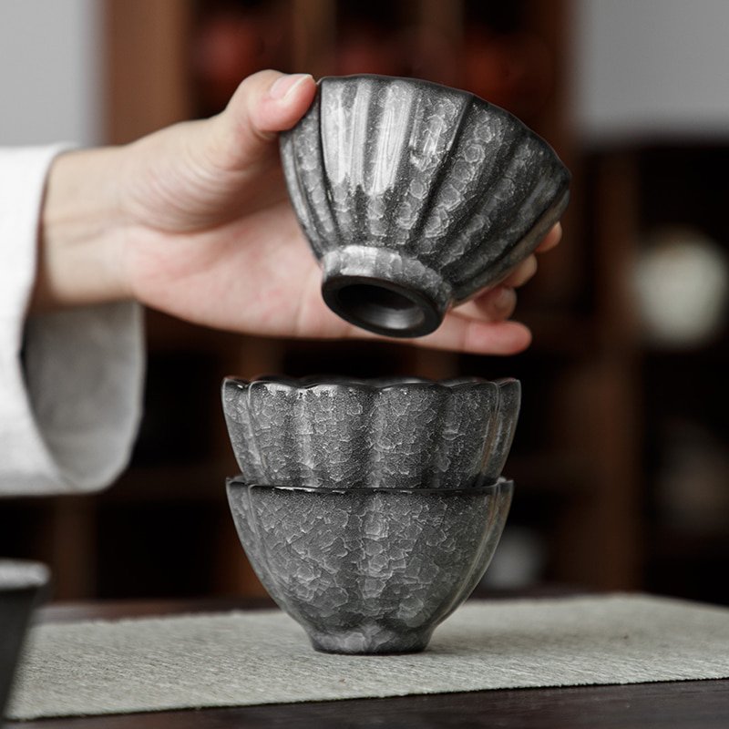 Introducing the Grey Ice Cracked Lotus Shaped Vintage Chinese Traditional Ceramic Tea Cups, a set that embodies the essence of Chinese tea culture. These cups, with their unique lotus shape and ice cracked texture, bring a touch of serenity and tradition to your tea drinking experience.