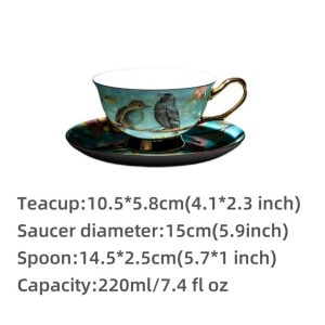 The Hand Drawn Flowers and Birds Fine Bone China Vintage Tea Cups and Saucers Set combines intricate floral and bird illustrations with the elegance of bone china, offering a sophisticated and charming touch to your tea time. This beautifully crafted set celebrates the timeless tradition of tea-drinking with vibrant colors and delicate detailing, bringing nature’s beauty to your table. If you want to experience the characteristics of Chinese tea ceremony, please learn about our Chinese tea cup set.