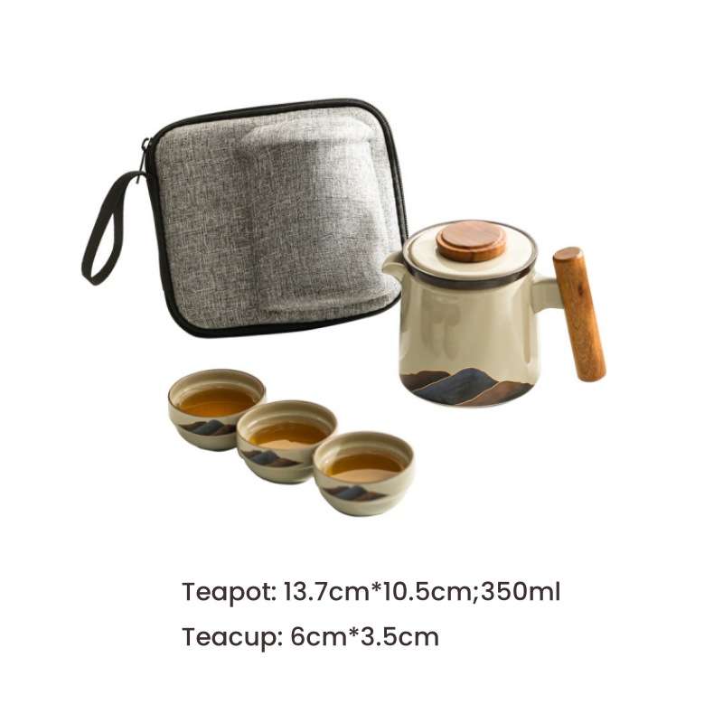 The Hand-drawn Mountain Ash Glaze Ceramic Portable Gongfu Travel Tea Set with Case offers a stylish, portable solution for Gongfu tea brewing, featuring an elegant hand-drawn mountain design and a protective carrying case.