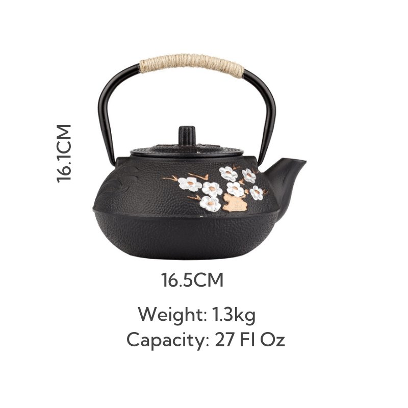 The Hand-Painted Antique Black Cast Iron Teapot Kettle with Plum and Bamboo Design makes for an exceptional gift for tea lovers, collectors, or anyone who enjoys adding a touch of tradition to their home. Its beautiful design and functionality make it a perfect gift for birthdays, anniversaries, or any special occasion.