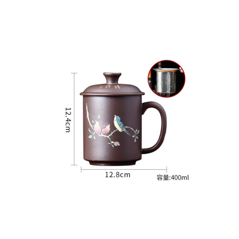The Hand-painted Flower and Bird Paintings Yixing Zisha Tea Cup with Lid makes a perfect gift for any tea lover or collector of fine tea ware. Its artistic design, coupled with its practical functionality, makes it an ideal addition to any tea collection. For a more versatile tea experience, explore our tea infuser mug with lid collection for tea mugs that offer both style and convenience.