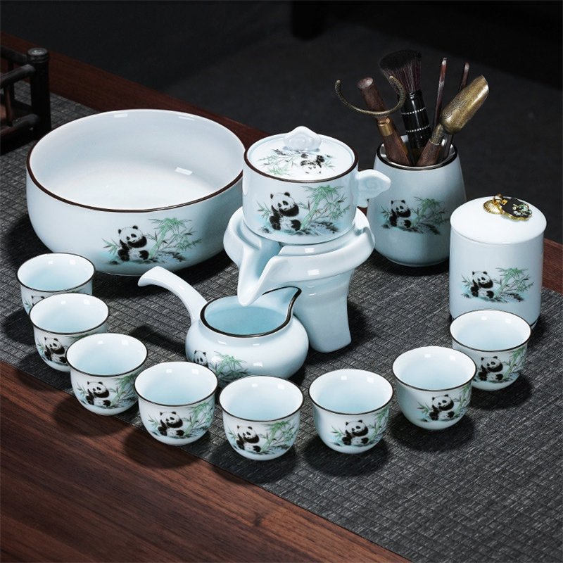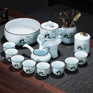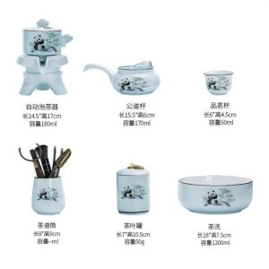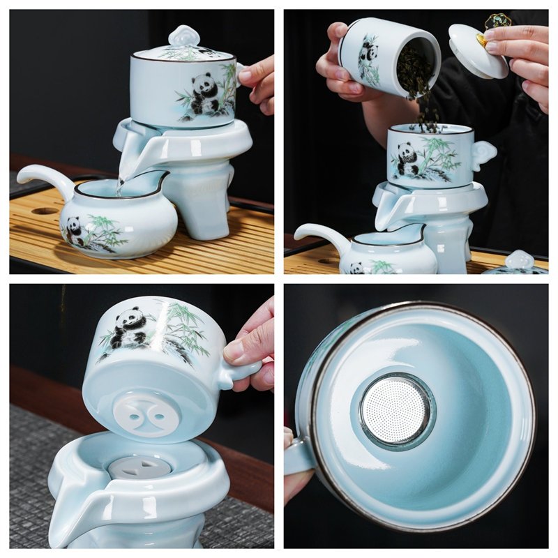 The Hand Painted Panda Eating Bamboo Ceramic Automatic Lazy Teapot and Cup Set combines traditional Chinese art with convenience, featuring a panda design and automatic brewing system for a seamless tea experience.