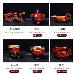 Introducing the Handmade Antique Chinese Red Kiln Change Lazy Semi-Automatic Dragon Themed Porcelain Tea Set, combining traditional artistry with modern functionality. This exquisite tea set features a captivating dragon design, a symbol of power, wisdom, and protection. The set’s lazy semi-automatic pouring mechanism ensures an effortless and elegant tea-drinking experience. Whether for a Gongfu tea ceremony or a leisurely tea session, this set is perfect for tea enthusiasts and collectors alike.