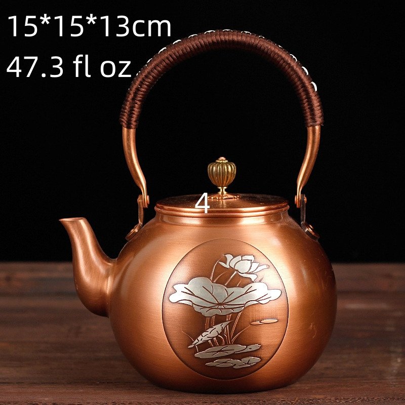 The Handmade Antique Solid Copper Teapot Kettle with Lotus Pattern and Sterling Silver Overlay is a true testament to the fine art of tea brewing. Each kettle is meticulously handcrafted by skilled artisans, blending traditional techniques with a touch of modern luxury. The delicate lotus pattern, elegantly overlaid with sterling silver, gives this teapot a refined, sophisticated appearance that stands out in any tea collection. This teapot is the perfect choice for anyone who appreciates fine craftsmanship and the beauty of traditional antique copper teapot design.
