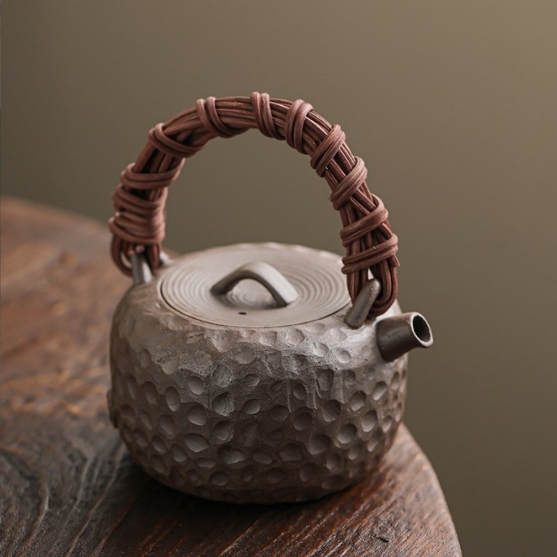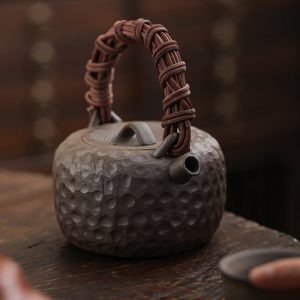 This teapot is meticulously handmade with rough, textured pottery that gives it an authentic and organic feel. The addition of a woven bamboo handle adds both comfort and style, making it easy to carry and pour. The combination of earthy tones with a vintage Japanese teapot design makes this teapot a standout piece in any kitchen or tea room. If you’re a lover of handcrafted, natural aesthetics, this teapot is perfect for you.