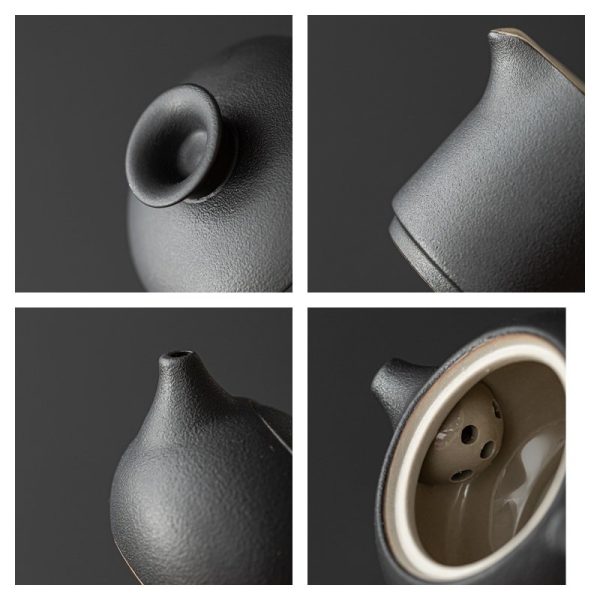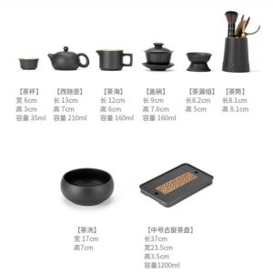 The Handmade Authentic Modern Japanese Traditional Tea Set with Antique Black Rough Glaze beautifully combines traditional Japanese craftsmanship with a contemporary touch. The striking contrast of the deep black rough glaze and the sleek silver inlays creates a visual masterpiece perfect for your tea ceremonies. This set is a true testament to the art of Japanese tea culture, making it an ideal addition to your collection or a thoughtful gift for tea enthusiasts.