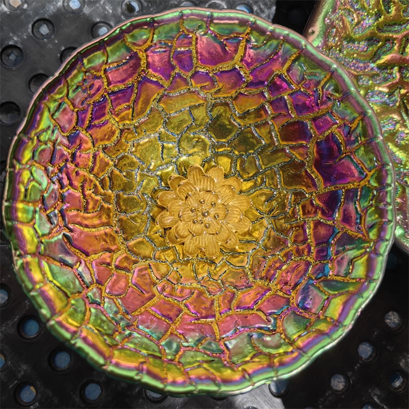 The Handmade Colorful Fragments Tenmoku Glaze Jian Zhan Ceramic Tea Cup is a captivating example of traditional Jian Zhan pottery with a modern twist. This tea cup features a unique Tenmoku glaze with vibrant, iridescent fragments that create a stunning visual effect. The intricate mix of colors—ranging from golden to rich hues of purple, green, and blue—mimics the beauty of natural patterns and textures. Each cup is a one-of-a-kind piece, with the colors and patterns varying from one cup to another, making it a true work of art.